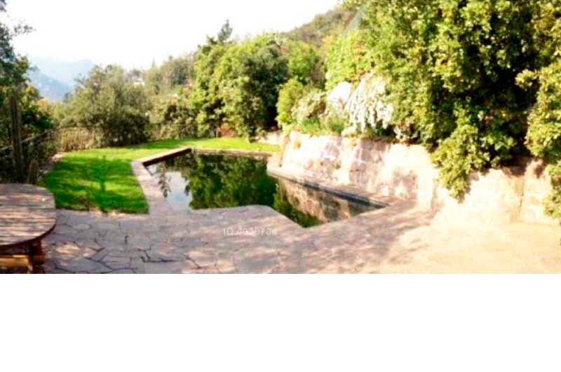 Casa de dos pisos con vista panorámica, con jardín en desniveles, terrazas piscina.