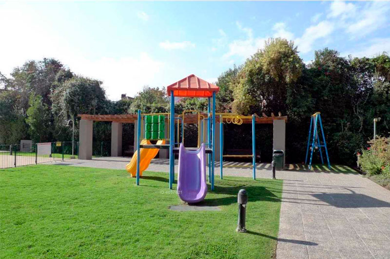 El edificio cuenta con estacionamientos de visita, gimnasio, sala de eventos, sala de cine, sala multiuso, piscina ,juegos para niños. Con cámara de seguridad en todo el edificio, además con lockers y baños para el personal de servicio.
